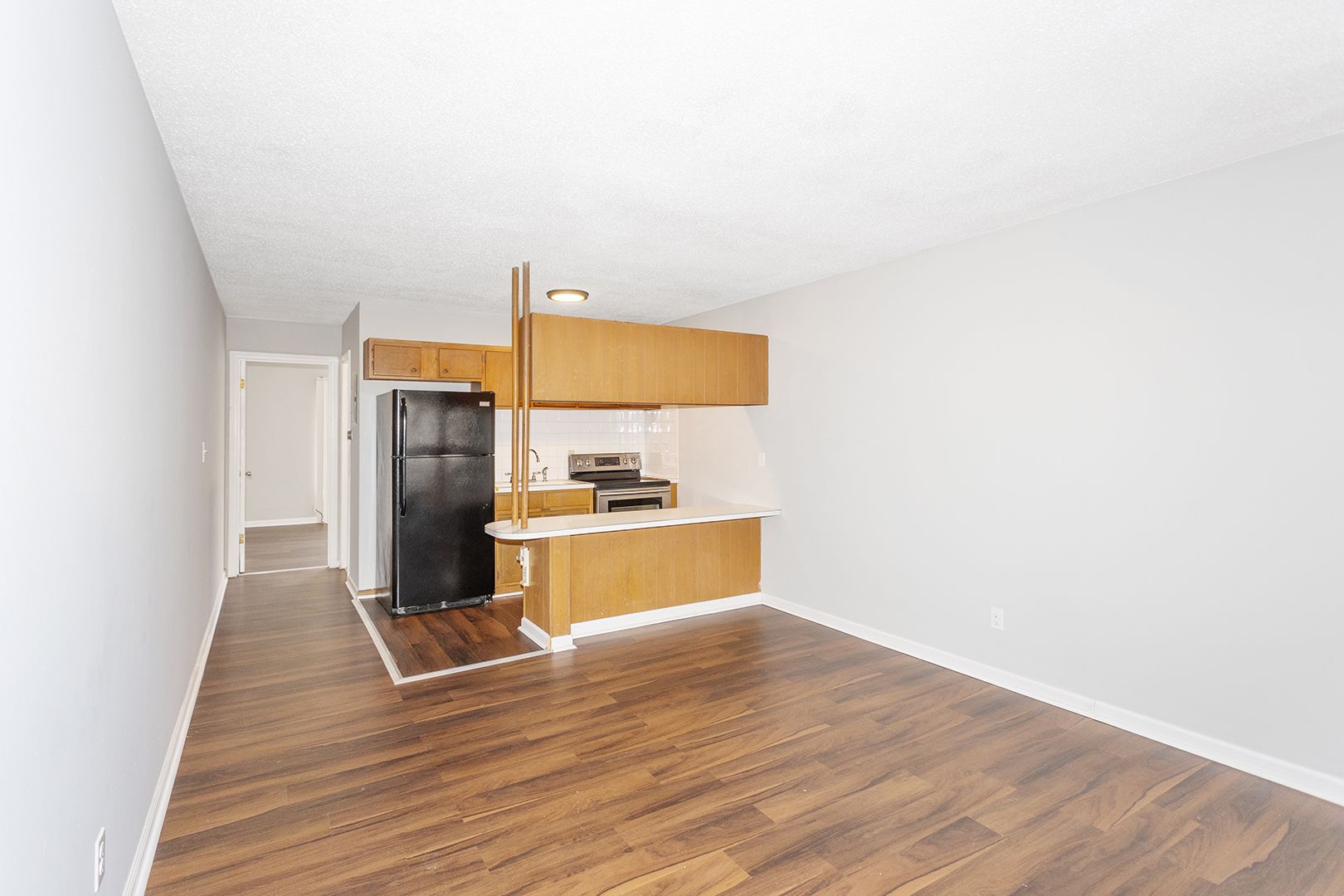 Comfy, freshly painted apartment near commercial areas and two elementary schools. Nice lighting and ventilation. Includes stove, oven, and fridge.